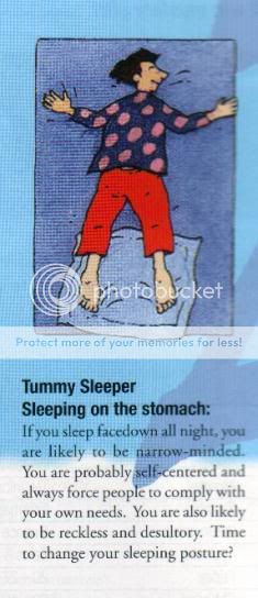 Jika anda tidur tertelungkup sepanjang malam anda cenderung berpikiran sempit. Anda mungkin egois dan selalu memaksa orang untuk memenuhi kebutuhan anda sendiri. Anda juga cenderung sembrono dan acak-acakan.